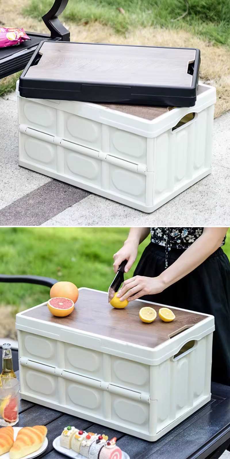 Он изготовлен из высококачественного полипропилена, прочного и долговечного, влаго- и пыленепроницаемого, легко чистящегося. Что касается внешнего вида, минималистский дизайн придает ящику для хранения уникальный вид, создавая ощущение простоты и модности. Он очень подходит для размещения в семейных местах, таких как спальни, гостиные и кемпинги на открытом воздухе. Кроме того, в ящике для хранения в виде ракушки можно не только хранить предметы первой необходимости, такие как одежда и книги, но также использовать его в качестве мебели, такой как прикроватные тумбочки и журнальные столики, что делает его очень практичным. Этот продукт имеет деревянную столешницу, которую можно использовать в качестве разделочной доски в дикой природе.
