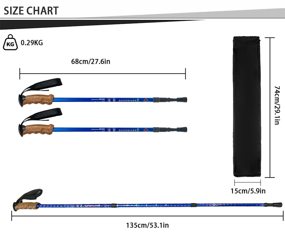 [Компактный и удобный для путешествий] Трекинговые палки можно легко хранить в багаже, рюкзаках и спортивных сумках. Эта треккинговая палка также поставляется с удобным для хранения резиновым защитным наконечником, соединителем для палки и корзиной для грязи. [Новая улучшенная модель! Палки Race-Trekking оснащены мягкими ремнями для максимального комфорта и эргономичного захвата. Не нужно беспокоиться о том, что треккинговая палка снова упадет.