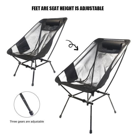Пикник для кемпинга Черная нейлоновая сетчатая сетчатая сетчатая на открытом воздухе складные пляжные стулья предназначены для комфорта, долговечности и переносимости, что делает их идеальными для приключений на открытом воздухе.