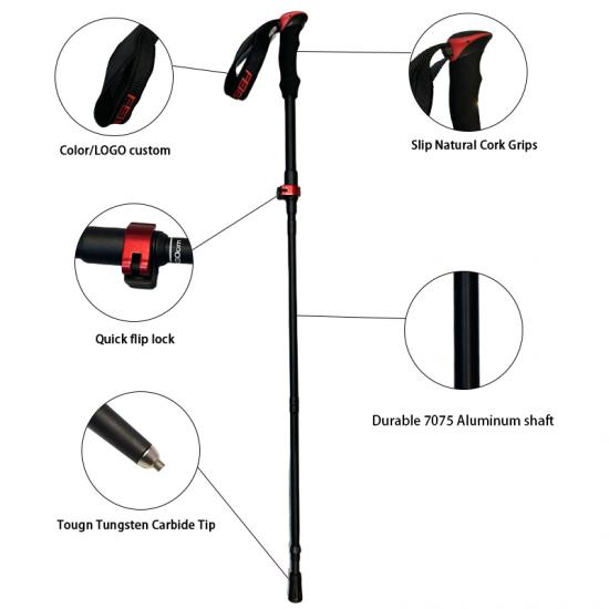 Бренд : Фабрика Анхуи Фейстель Связанное производство : OEM и ODM Продукт : Сверхлегкие многофункциональные складные треккинговые палки из алюминия 7075 отличаются прочной конструкцией, удобными ручками из материала EVA и компактными размерами, обеспечивая надежную поддержку во время походов, альпинизма, треккинга и повседневных прогулок на открытом воздухе.