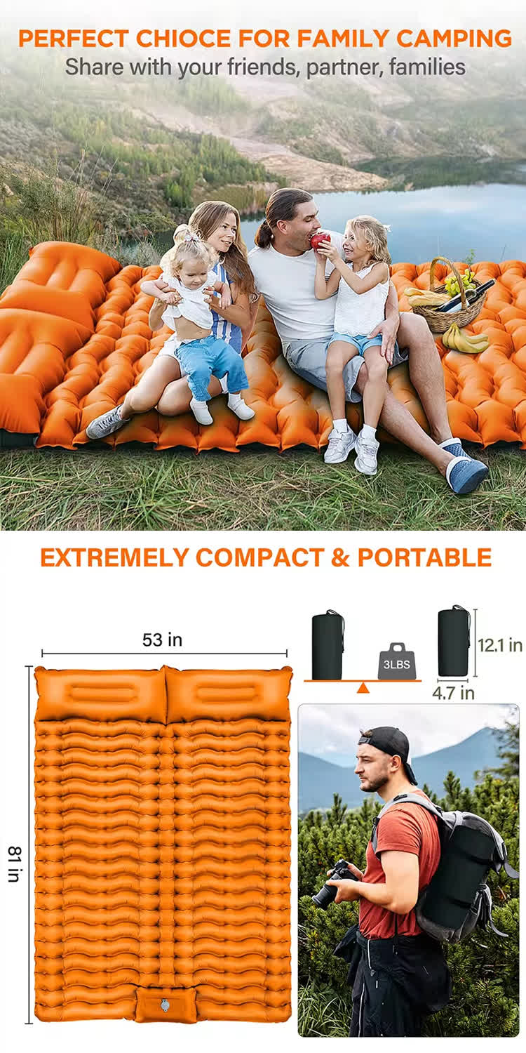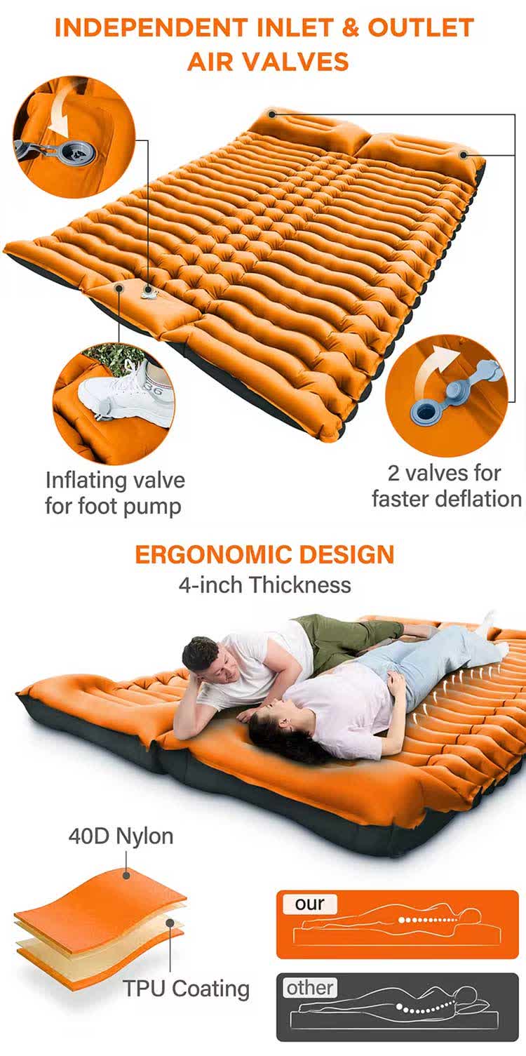 Двойная самонадувающаяся подушечка для кемпинга с подушкой