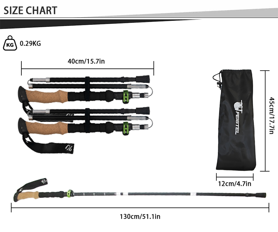 [Компактный и удобный для путешествий] Трекинговые палки можно легко хранить в багаже, рюкзаках и спортивных сумках. Эта треккинговая палка также поставляется с удобным для хранения резиновым защитным наконечником, соединителем для палки и корзиной для грязи. [Новая улучшенная модель! Палки Race-Trekking оснащены мягкими ремнями для максимального комфорта и эргономичного захвата. Не нужно беспокоиться о том, что треккинговая палка снова упадет.