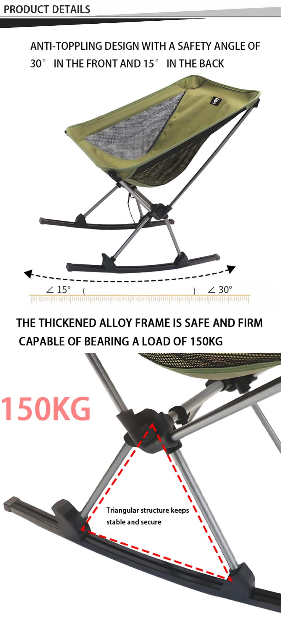Бренд : ANHUI FEISTEL FACTORY Сопутствующее производство : OEM и ODM Продукт : складные портативные сверхмощные походные стулья-качалки Moon, портативные и складные, удобные и устойчивые, обеспечивающие расслабляющий отдых на свежем воздухе.