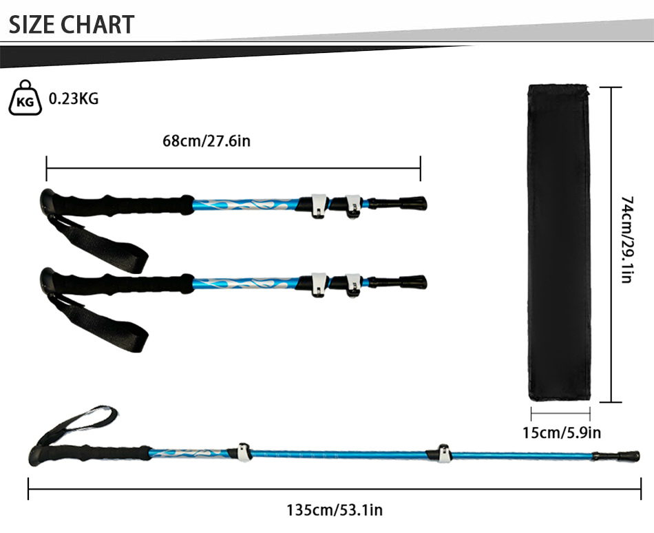 [Компактный и удобный для путешествий] Трекинговые палки можно легко хранить в багаже, рюкзаках и спортивных сумках. Эта треккинговая палка также поставляется с удобным для хранения резиновым защитным наконечником, соединителем для палки и корзиной для грязи. [Новая улучшенная модель! Палки Race-Trekking оснащены мягкими ремнями для максимального комфорта и эргономичного захвата. Не нужно беспокоиться о том, что треккинговая палка снова упадет.