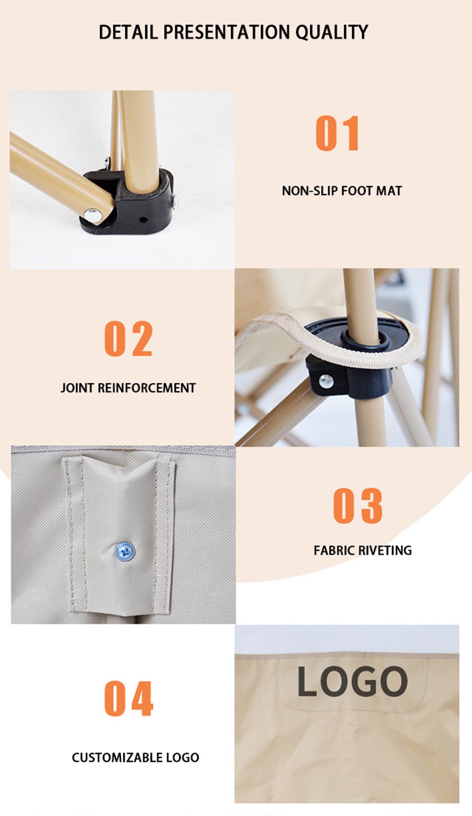 Бренд : Аньхой Фейстел Фабрика Связывать производство : OEM & ODM Продукт : Этот портативный кемпинг -стул имеет легкий, складной дизайн с прочным строительством и удобными боковыми карманами, идеально подходящими для пляжных поездок, кемпинга и отдыха на открытом воздухе.