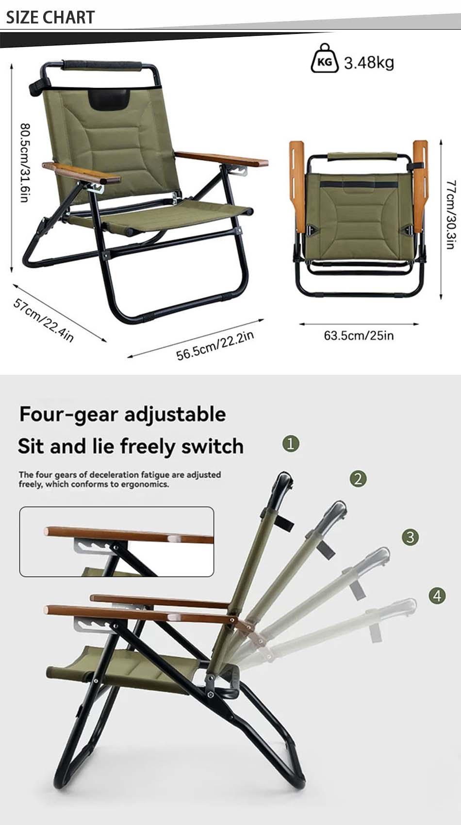 Открытый регулируемый складной стул для отдыха с откидной спинкой