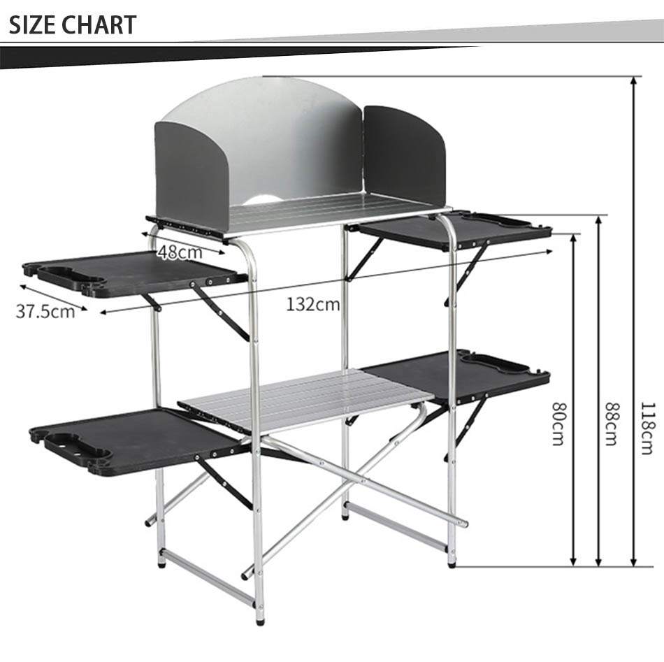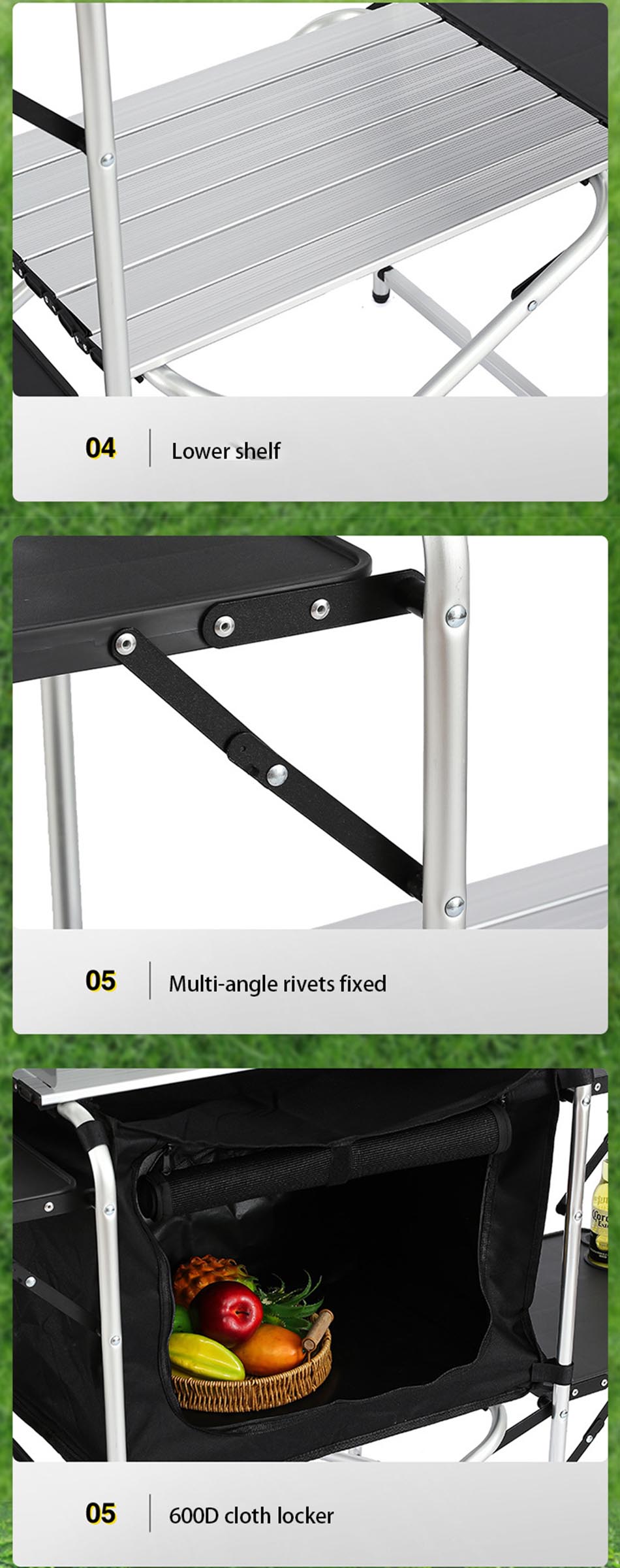 Продукт : Портативный многофункциональный складной стол IGT из алюминиевого сплава для кемпинга имеет прочную и легкую конструкцию, идеально подходящую для обедов на открытом воздухе, приготовления пищи или использования в качестве мобильной кухни во время кемпинга.