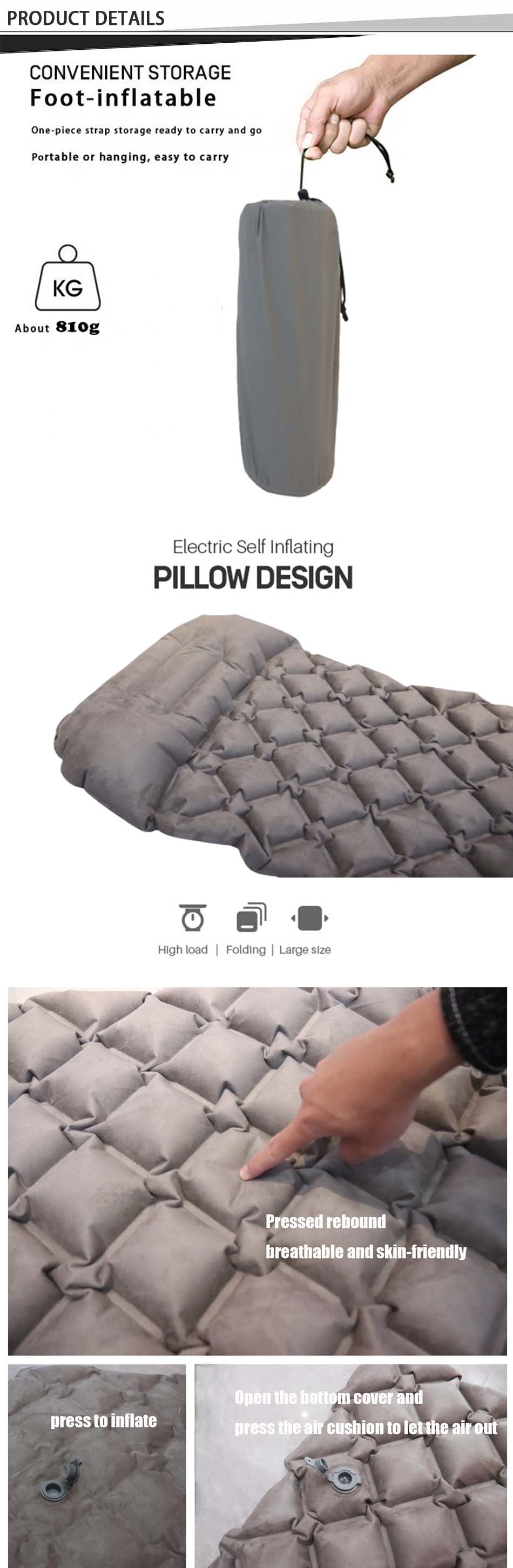 Автоматические надувные коврики для кемпинга на открытом воздухе - очень практичное снаряжение для активного отдыха. Он изготовлен из материала Chunya Textile и покрыт ПВХ, который обладает характеристиками высокой эластичности, комфорта и износостойкости.