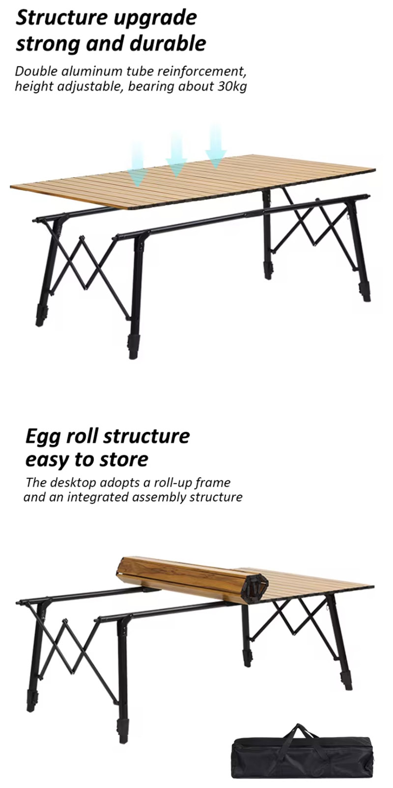 * Премиальные материалы: в качестве верхней панели использован прочный алюминиевый материал, высокопрочный авиационный алюминиевый сплав для ножек стола и опоры для использования на открытом воздухе. В отличие от обычных деревянных или тканевых столов, здесь более прочная и ровная поверхность.